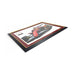 Lewis racing the 2025 Ferrari SF25  with an Authenticity plaque mounted below Lewis's original signature. Beautifully framed in black with a gold inner trim. double mounted in red and gold giving you a stunning piece of artwork from David Johnson.
