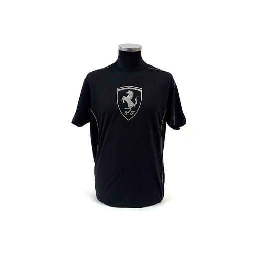 View full detailsScuderia Ferrari short sleeve T-shirt in black with a large silver Scudetto Shield design across the front. Silver piping over both sleeves and dow...