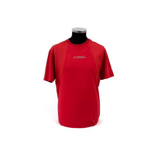 View full detailsSporty multi-panel red Ferrari T-Shirt. Strechy smart tee featuring the Ferrari shield printed front and center, a breathable section across the ba...