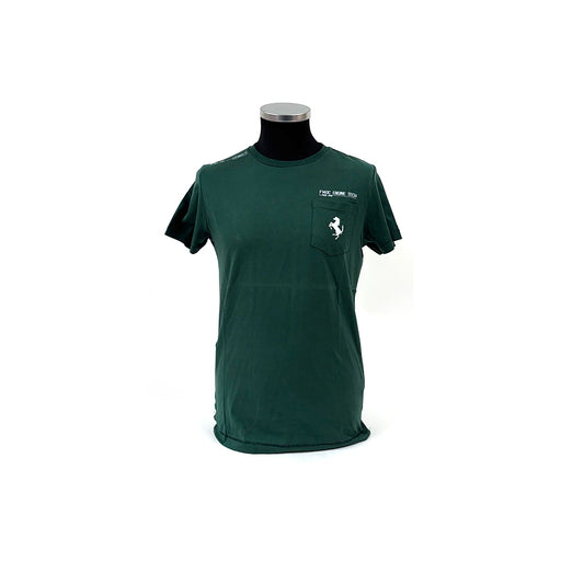 View full detailsPart of the Ferrari Prancing Horse Collection. Beautifully finished short sleeve T-shirt finished in a dark green with the Prancing Horse emblem pr...